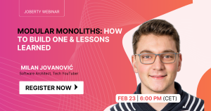 Thu, February 23rd @6:00 pm GMT+1 | 60 min | FREE Joberty Online Webinar Modular Monoliths: How to Build One & Lessons Learned Good software architecture is about having options, and Modular Monolith delivers on that