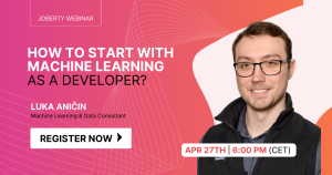 Thu, April 27th @6:00 pm GMT+1 | 60 min | FREE Joberty Online Webinar How to start with Machine learning as a developer? Are you interested in learning about Machine Learning and leveraging this amazing technology